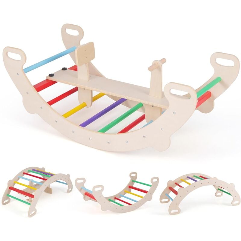 Costway - 4-in-1 Wooden Climbing Toys for Toddler Multifunctional Rocking Horse Arch Indoor